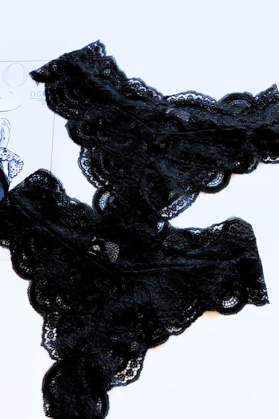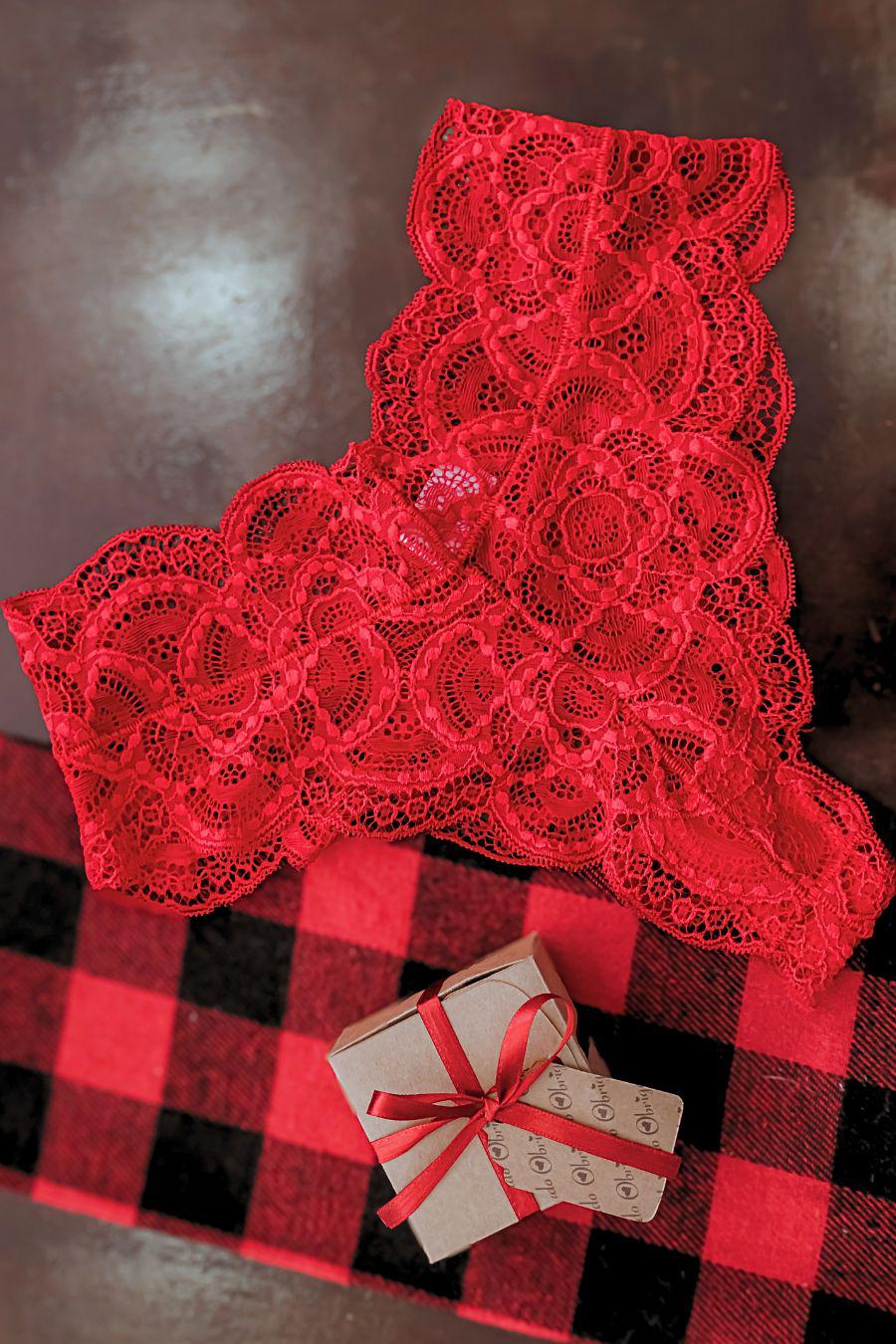 Calcinha modelo fio dental, desenvolvida em renda (90% poliamida 10% elastano), forro 100% algodão, cós médio.