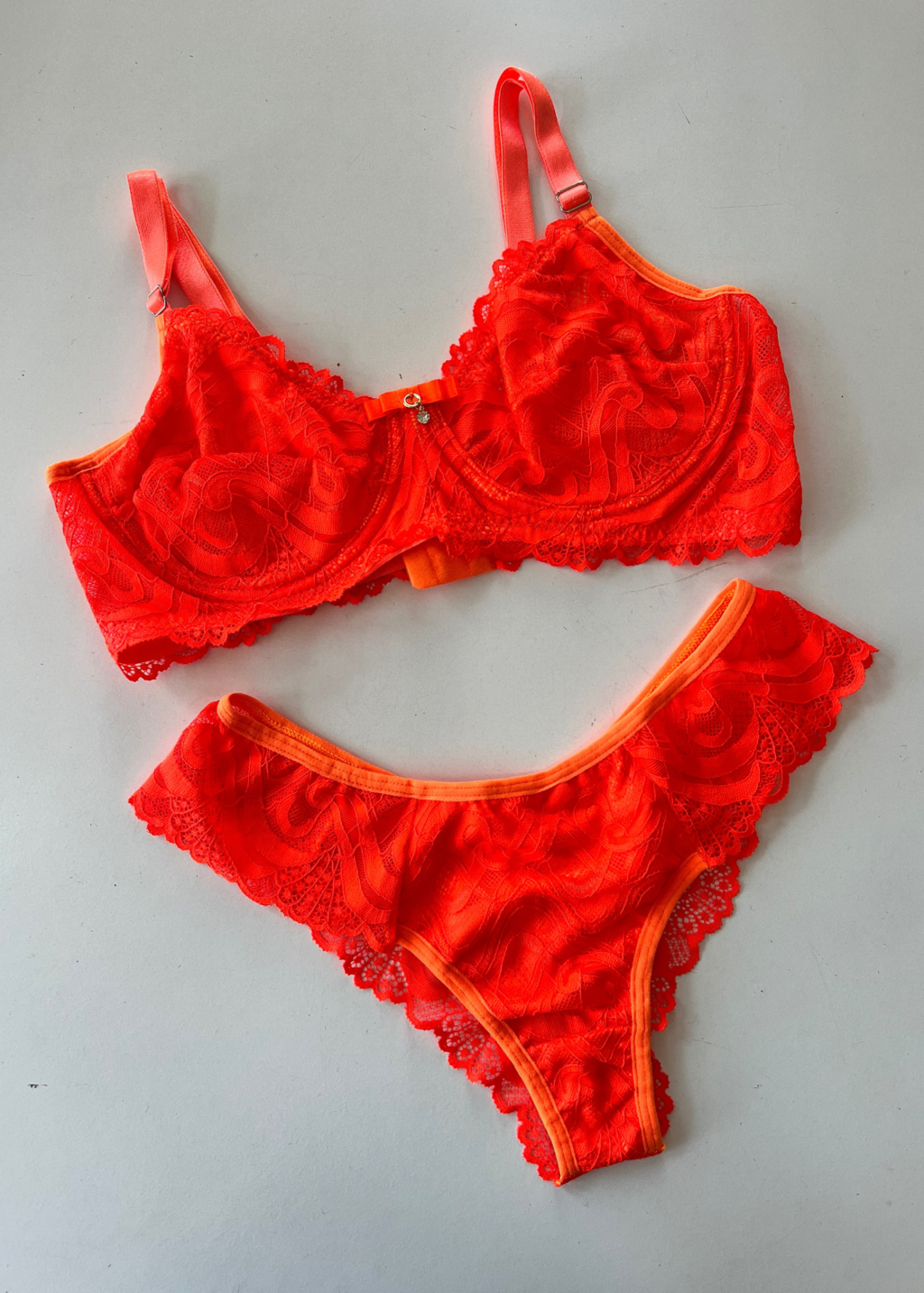 O Conjunto Neon é a escolha perfeita para quem deseja aliar conforto e sensualidade. Composto por um sutiã em renda que valoriza seus seios com aro meia taça, ele garante um decote poderoso que vai deixar você ainda mais confiante.