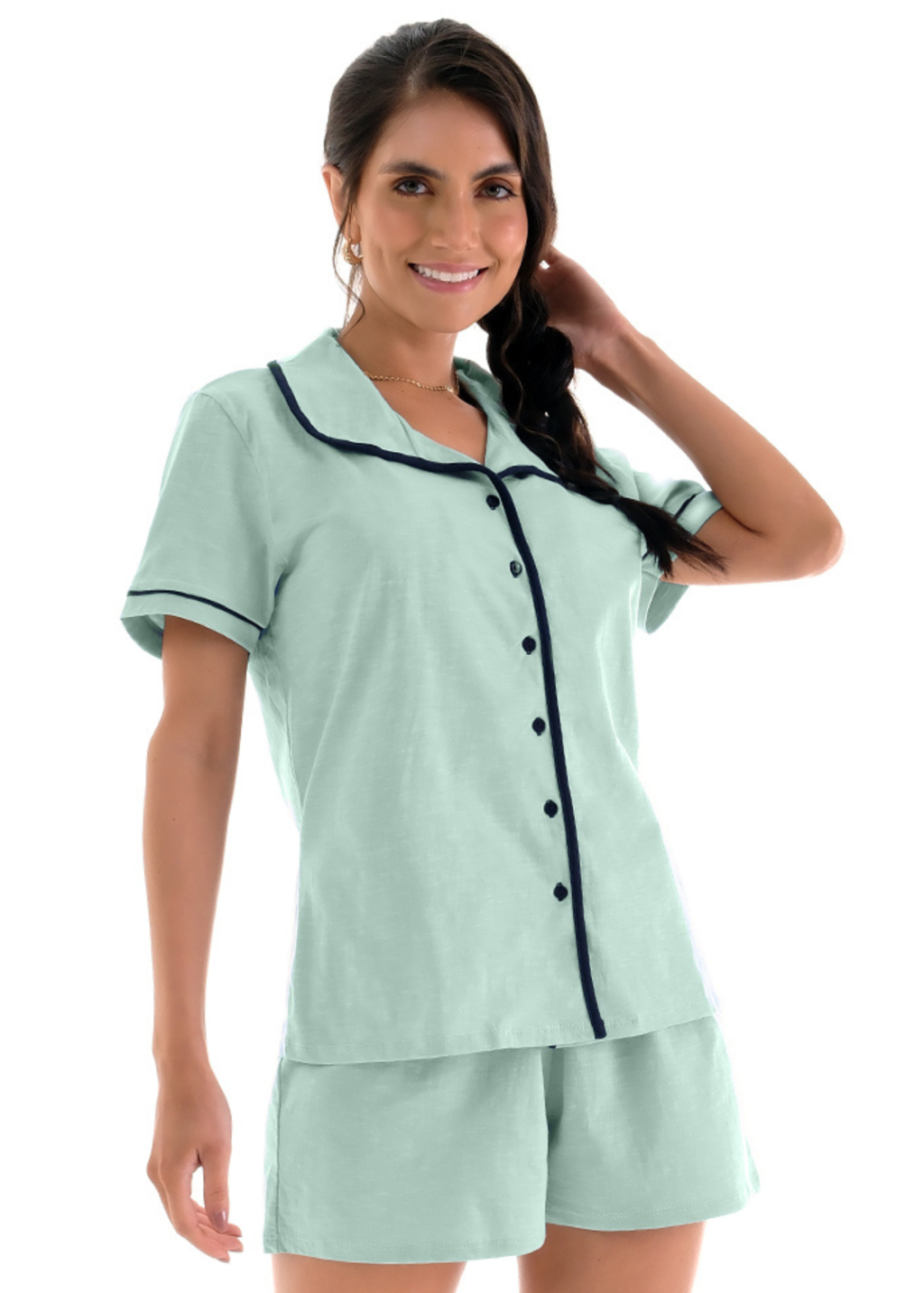 Descubra o Pijama Americano Abertura Frontal na encantadora cor verde, a escolha ideal para mamães que buscam conforto e praticidade! Com botões funcionais, ele se torna indispensável na hora da amamentação, facilitando o cuidado com seu pequeno. Além disso, é perfeito para mulheres que passaram por cirurgias, proporcionando um toque suave e acolhedor.