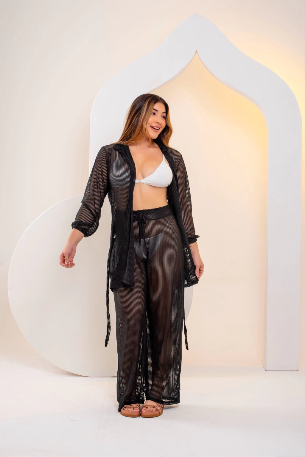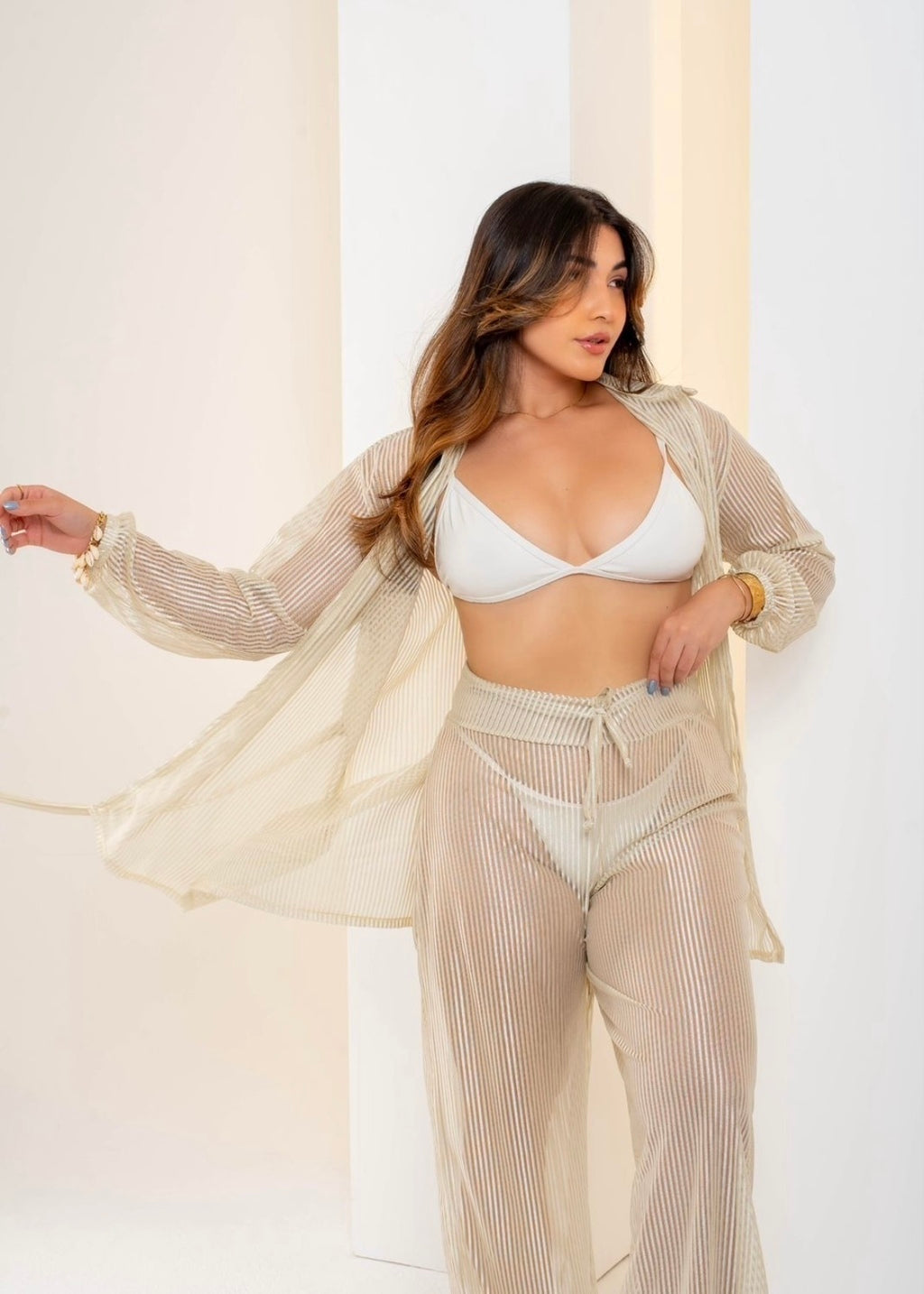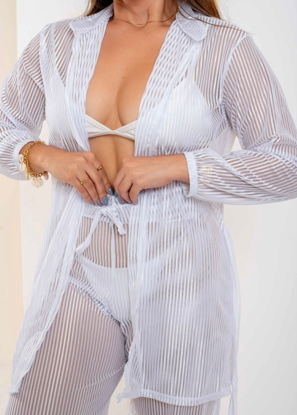 Descubra o Conjunto de Saída de Praia Maré Leve, a combinação perfeita de elegância e conforto para os dias ensolarados. Composto por uma delicada camisa e calça em tule, este conjunto é ideal para quem deseja se sentir bonita e sofisticada à beira-mar.